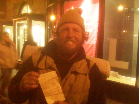 On my way home from the interview, I saw a Parking Enforcement Officer walking along one of DC’s downtown streets. I knew immediately that I had to give my $10 to him. I walked up to the 23-year-old who was typing away on his handheld parking enforcement device. Stephén wins the prize for the recipient who was best prepared for winter weather. The DC native had on some serious winter gear. He had a total of about 5 square inches of skin exposed, that’s it. Perhaps that helps keep his identity hidden as well in case somebody gets really angry with a ticket he writes! Anyway, I was intrigued to speak to someone with a job that puts them in a high degree of direct contact with the public…and often the interaction is not civil.