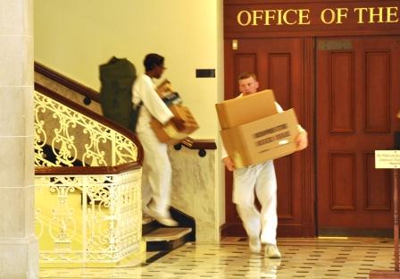 At the Naval Academy, the plebes were tirelessly carrying boxes all over campus. Some looked near exhaustion. (photo: Reed)