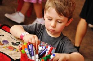 A young boy finds just the right marker to finish his coloring (photo: Reed)