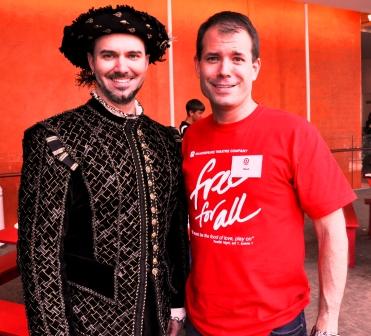 I have dabbled in theatre since my teenage years and had fun helping kids understand the world of Shakespeare as well as helping them with more tangible tasks such as coloring.  While I was helping the children color their tote bags with special markers that write on fabric a very famous individual walked by: William Shakespeare.  I was pretty startled, but the show must go on so I continued with my work.  At one point though I realized that I might be able to steal a few minutes with the great bard and give him my $10.  The rest is history.