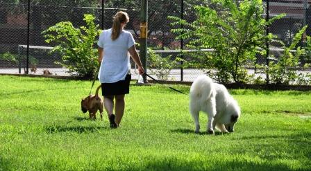 I found Heather walking Petunia and Bear Bear along the park at 23rd and P Streets.  Petunia is a rather fierce looking dog that appears to have some pit bull in her.  Don’t let this little three and a half year old fool you though, she couldn’t hurt a fly.  “She just wants attention,” Heather tells me as Petunia licks me to death.  Bear Bear is quite large and I know that I have seen this dog in the neighborhood before.  It’s the kind of dog you don’t forget easily.  Now three, Heather has had Bear Bear since he was five months old.