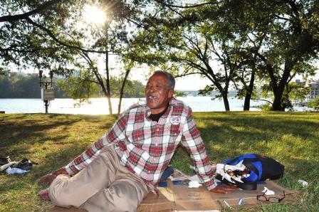 others just leisurely enjoying the calm waters.  About 100 yards from the manicured grounds of the Kennedy Center I found a man taking a nap on a shaded patch of grass on the northern bank of the Potomac.
