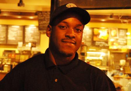 So Kyle is originally from Philadelphia and is an Eagles fan. “I liked McNabb and I didn’t like that they traded him,” he told me referring to Donovan McNabb being traded to the Redskins. Although an Eagles fan, he owns a Michael Westbrook jersey. Westbrook used to be a wide receiver for the Redskins. I found out about the jersey because apparently when the Redskins played the Eagles back on October 3rd, my man Kyle bet his buddy Chris, who was with him at the Safeway, that if the Eagles lost he would drink as many shots of Grey Goose as the Eagles lost by AND, here is the kicker, eat a portion of his Michael Westbrook jersey! Yes! Well, Chris says that he chickened out on the shots and eating the jersey. Instead he wore a McNabb jersey for a day.