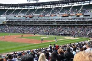 The 21-year-old, who wears a badge identifying him as Vendor #623, said that today was his first day on the job! I asked him how it was going and he said, “The beer is heavy. Really heavy.” Just for that I bought one of his chilled Budweisers…you know, to help his tired arms and aching back out. The container he is carrying around looks like it holds about a case and a half of 16 oz bottles. Add some ice and water to that and you got a back-breaker of a load.