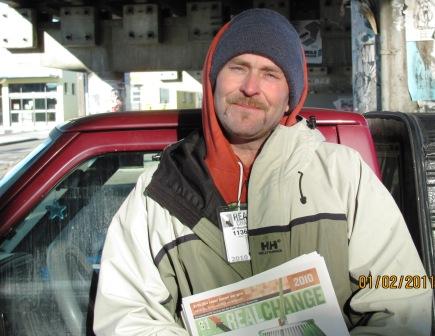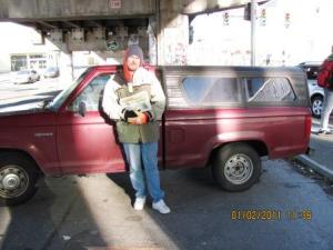 Today (Dec. 23, 2010) I walked over to talk with Quinton R. while he was waiting at the bus stop.  So far he seemed to be the shyest of those I’ve met during this adventure.  Quinton thought it was just amazing that Reed had given $10 to a stranger everyday for a year and was even more amazed that it was being carried on by others.