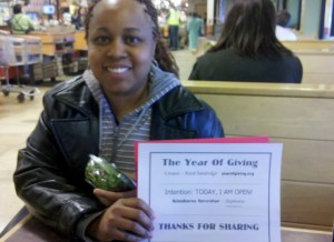 One reason I was interested in giving to teenagers is that teens are still so idealistic and inspired. I thought for sure they would be supportive of the Year of Giving philosophy. Several of them commented something along the lines that what I was doing should happen more often. So I think I was on the mark, and made sure to write down the website address for them.